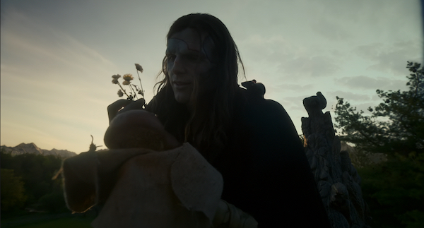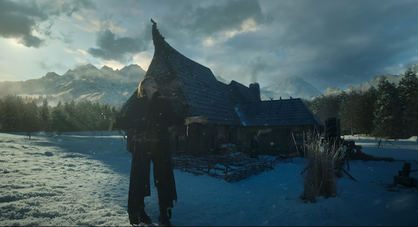 Without a doubt my favorite section of the movie is when The Creature catches up with his creator in the cabin of the frozen ship, realizes Frankenstein has just told the captain his story, and wants to tell his version. Suddenly The Creature is a more eloquent man the doctor never knew, he’s even narrating, and the feel of the movie changes to a bit of a BAMBI or SNOW WHITE fairy tale feel as he stumbles from the burnt tower into the forest and shares berries with a deer. This is the bit where he secretly helps a blind man (David Bradley, EXORCIST: THE BEGINNING) and little girl (Sofia Galasso), hiding from sight but providing and building for them. He even constructs a heavy duty sheep pen pounding posts into the ground with his bare hands! They attribute his deeds to “The Spirit of the Forest” and leave him offerings of clothes and bread and things. If 2025 has any cinematic images sweeter than The Creature perched on the roof of the cabin, admiring such a gift with a little mouse friend sitting on his shoulder, I can’t think of what they are.