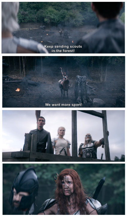 It’s set in the land of Hyrkania during the Hyborian Age. When Sonja (Matilda Lutz from the excellent Coralie Fargeat movie REVENGE) was a child her village was raided and she fled. (Unlike in some of the ’80s barbarian movies we don’t have to specify what horrible things the raiders did.) Since then somehow she became a hell of a fighter and lives tribeless in the forest, searching for her people.