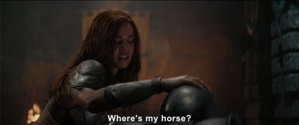 That section of the movie lasts long enough that I kinda thought they weren’t going to leave that location, but eventually they do, thankfully. When she has a chance to escape, she goes to rescue her horse first. She’s pretty pissed about that shit. A little bit of a JOHN WICK feel there.