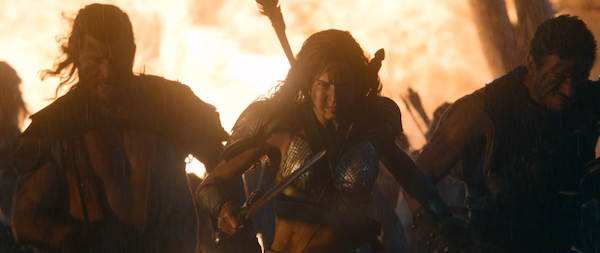 Director MJ Bassett (SOLOMON KANE, ROGUE [the Megan Fox vs. a lion one, which I liked], season 1 finale of Reacher) and screenwriter Tasha Huo (The Witcher: Blood Origin) know we’re not gonna be surprised by the “and you will be forced to fight your friend to the death” part of the arena fighting, so they get right to it. Sonja makes an admirable attempt to refuse, but it doesn’t work.