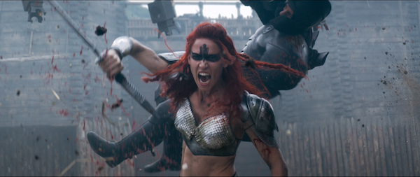 No complaints about Lutz in this. She goes for it. I wish her supporting cast had as much screen presence. Rhona Mitra (BEOWULF, GET CARTER, HIGHWAYMEN, HARD TARGET 2) and MMA fighter Michael Bisping (xXx: RETURN OF XANDER CAGE, TRIPLE THREAT, NEVER BACK DOWN: REVOLT) are good in small roles, but the others I found mostly flavorless. Without enough style or charisma on screen to carry us through the shoe leather there are definitely some dull stretches. That’s why when it comes down to it I’ll probly never watch this as much as I’ve watched the ‘80s version. But I gotta give credit to Bassett and Huo for a pretty smart story that doesn’t always go to the obvious places. I like that they try to do something more complex than just kill the bad guy. He came from the same tragic circumstances as Sonja, so she has some sympathy for him, but also points out that it didn’t make her go out and enslave people, so fuck you man you suck.