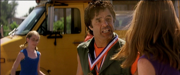 A scene that’s pretty representative of the tone overall is the introduction of Sadie. Her dad sees her at a pay phone while driving her many little sisters around in a shortbus, so he gets out and yells at her that she’s following him. While the girls practice their batons and karate in the background Dad waves around his derby trophies and medals and yells “You look like a puppy with no face, crying for food it cannot eat.” Neither actor plays it for comedy, and for me Sadie’s hurt feelings register more than the absurdity of the situation.