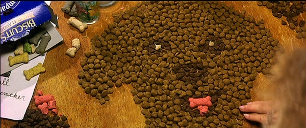 We also spend some time with the bereft dog owner Ethel Firecracker (Kathleen Kennedy, not the Lucasfilm one), a lovelorn manchild named Stool (Rich Schreiber), and a tangential, black-and-white flashback about a daredevil named Spank Williams (Cory McAbee, THE AMERICAN ASTRONAUT). There’s a rollerskating rink and a turtle motif, Emily makes dinner out of chocolate syrup and a chocolate Easter bunny, Ethel longingly creates a mosaic out of dog food.
