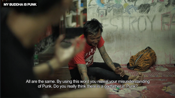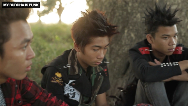 Religion is an interesting part of this. They record a song called “Fuck Religious Rules & Wars,” and the title MY BUDDHA IS PUNK makes it sound like Kyaw Kyaw is an atheist, but he seems to be a Buddhist. We follow him to meditate at a shrine, and he sometimes mentions Buddha and Buddhist ideas in his philosophizing. He just hates organized religion and the perverting of Buddhism into an excuse for violence. Of course there are Christian equivalents to this, but I don’t know, it seems cooler when it’s Buddhism! I guess because I grew up with Christianity and it didn’t take.
