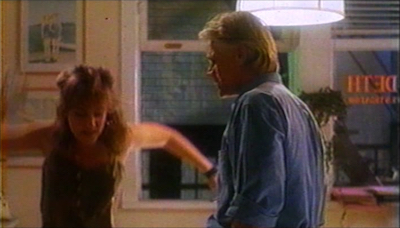 And here’s one I really couldn’t make heads or tails of: when Carmen shows up at Jack’s door she suddenly faints. Why? I don’t know. It’s old timey. But he carries her into his office, sets her down on a chair, telling little McNulty to “get the whisky,” and without hesitation McNulty pours him a glass of whisky which he lovingly pours into Carmen’s mouth and it makes her snap out of it. It really acts like this is the accepted, obvious procedure for fainting that everyone knows and would follow immediately. I guess we could say it’s something they do in the future, but Carmen doesn’t seem surprised by it at all. So maybe they did it in 1988 too. I guess I just never came across it. I was too busy watching DIE HARD or whatever to learn first aid.