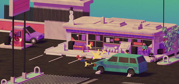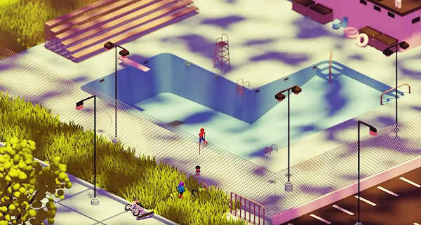 It’s not the same type of star-studded cast you get in a studio movie, it’s the kind where [adult swim]’s Joe Pera plays the owner of a dinosaur themed mini-golf course and comedian Demi Adejuyigbe plays a money guru Billy watches on Youtube. It’s also more about images and sounds creating tone and atmosphere than it is about plot. Basic shapes and blobs are cleverly put together to create a feeling of time and place – suburban Florida in the winter. Specifically it’s set between the day after Christmas and New Year’s Day, so the kids aren’t in school and have all day to rap at the beach or skateboard at the gas station.