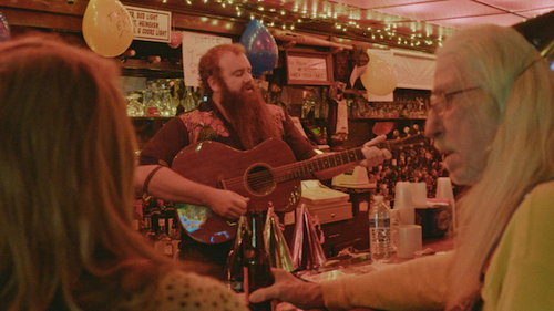 An article in The Guardian explains that filmmakers Bill Ross IV and Turner Ross recruited the cast by making conversations with people at local bars. Then they brought them together to film over two 18 hour days. They immediately realized they had to leave the jukebox on or it felt phony, so somehow we’re always hearing Michael Jackson, Spice Girls, Black Sabbath… I actually suspect the reason to let people believe it’s a documentary is that they used fair use to get the music rights. It really works, though. It’s music that would really be playing.