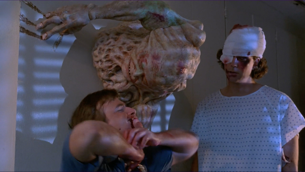 An old lady, Grannie Ruth (Annie Ross, PUMP UP THE VOLUME), and her adult granddaughter Susan (Heather Rattray, “White House Press Conference Reporter [uncredited],” DEEP IMPACT) flip through the channels watching all the coverage, and seem to know who the Bradleys are, and they head to the hospital to free them. By that time though the boys have already escaped on their own and added to their crime spree. (Henenlotter pulls a HALLOWEEN II by having hospital staff hitting on each other before becoming victims.)